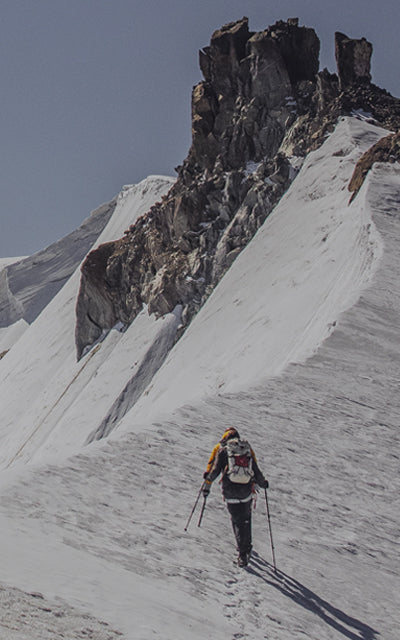 Higher up the ridge pinched to a knife edge of wind-packed snow, with short rock steps that forced quick switches from kicking steps to brief scrambles. There was no beta, no fixed line, only Ade and Paul’s judgment and our spacing. The year before we’d been on the Matterhorn - a 22 hour epic. It was brutal, but it was mapped, with known anchors, queues at cruxes, and a rhythm you could settle into. Here there were no footprints to follow. Every crest was a question. It felt wilder and lonelier, and it asked more of our decision making.