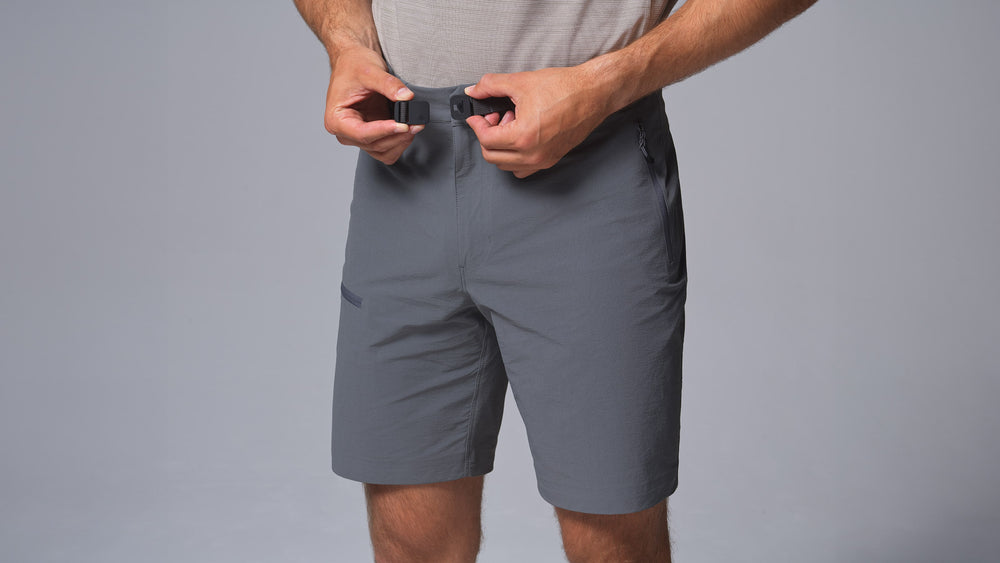 Versatile mountain shorts built for multi-activity use all season long. At the crag, in the valley, and off the hill, these lightweight and durable four-way stretch softshells deliver breathability, comfort, dynamic mobility and strength. The integrated low profile belt ensures a secure waist fit and sits comfortably under a harness. Four mesh-lined zip pockets provide secure storage options with boosted ventilation. The PFC-free DWR finish and sealed hem seams protect from unexpected showers. A sleek, timeless design for an adventurous life.