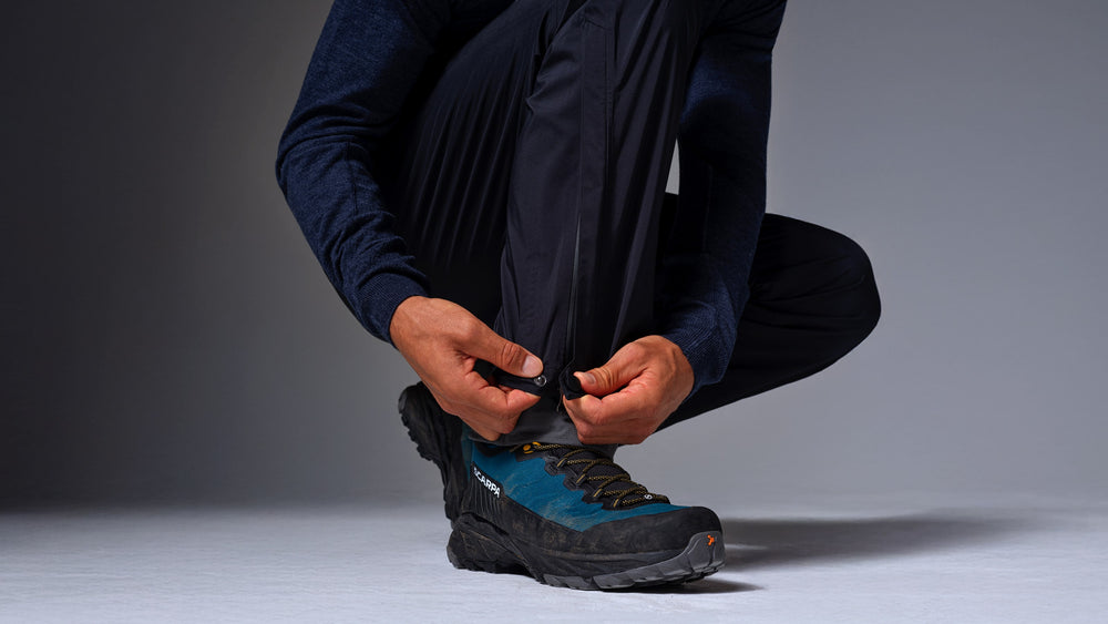 Modi is a lightweight waterproof trouser built for the fast and light mountain days. Named for the Old Norse god of courage and wrath, it channels resilience, precision, and protection into one streamlined layer.