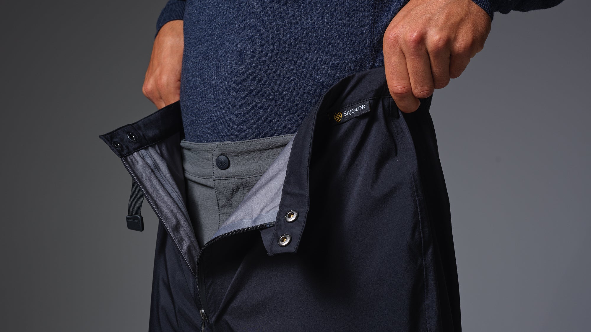At just 266g, this packable protection is cut from 2.5-layer SKJOLDR™ — our proprietary windproof, waterproof, and highly breathable fabric, engineered for durability and storm-proof performance. Fully taped seams throughout, a DWR finish, and glove-compatible AquaGuard® ankle vent zips and fly zipper with double-snap closure reinforce its focused feature set.