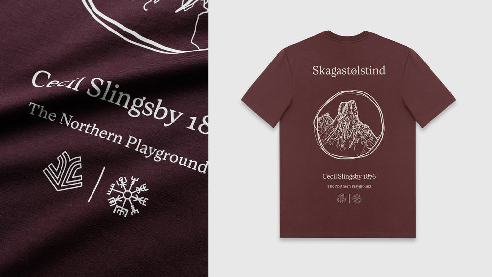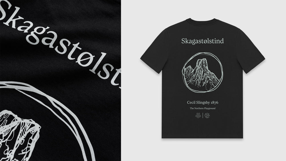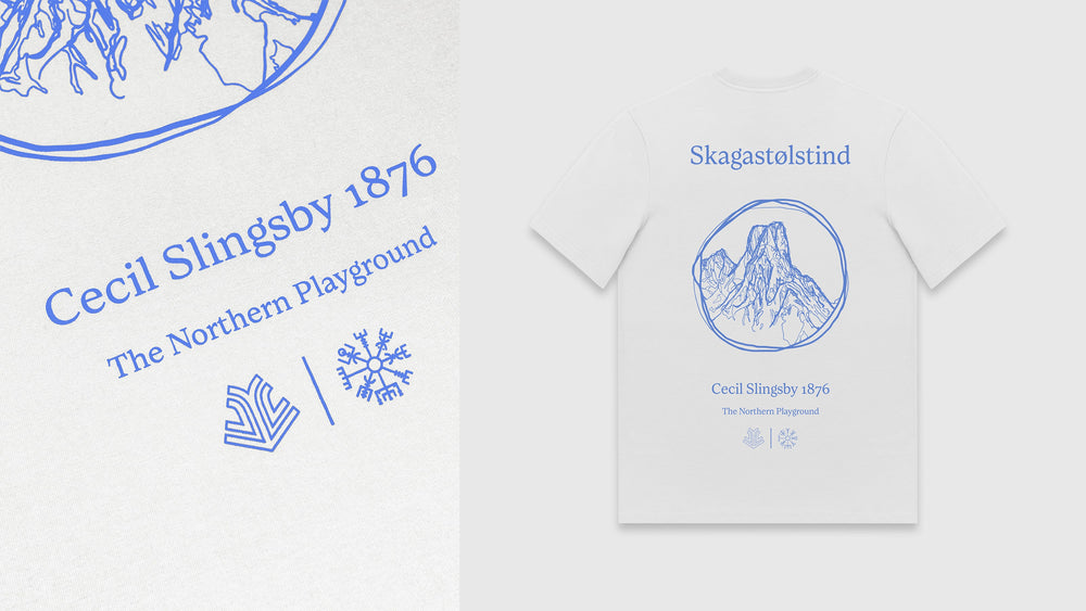 A premium organic cotton logo t-shirt. Distinctively curated to pay homage to the pioneering British mountaineer, explorer, and writer William Cecil Slingsby, the father of Norwegian mountaineering.