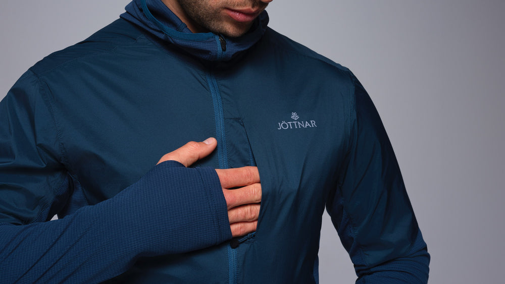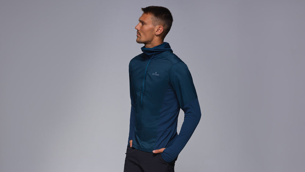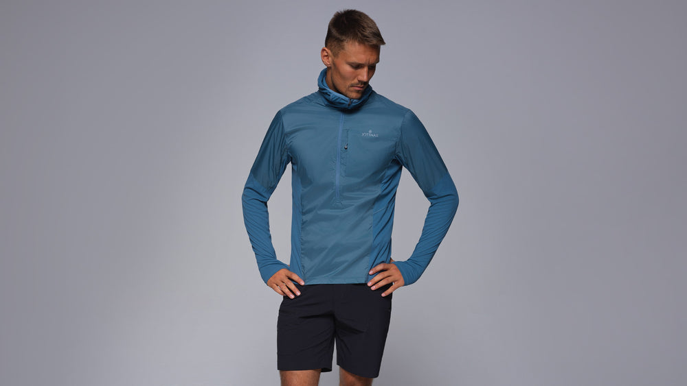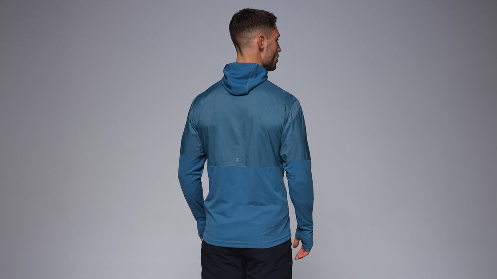 Ultralight, breathable, pocket-packable, and water-repellent. A hooded windshell built for constant momentum in changeable conditions. The wind and shower-resistant nylon body is blended with highly breathable 4-way stretch sleeves, side panels and lower back to balance protection and breathability at all times. Boost ventilation on the uphills with the chest half-zip and deploy the hood and thumb loops when the temperature drops on exposed routes. Wear over a lightweight base layer or quickly stash it into its own chest pocket. The Polygiene® anti-microbial finish helps you stay fresher for longer and the Durable Water Repellent (DWR) coating repels water.