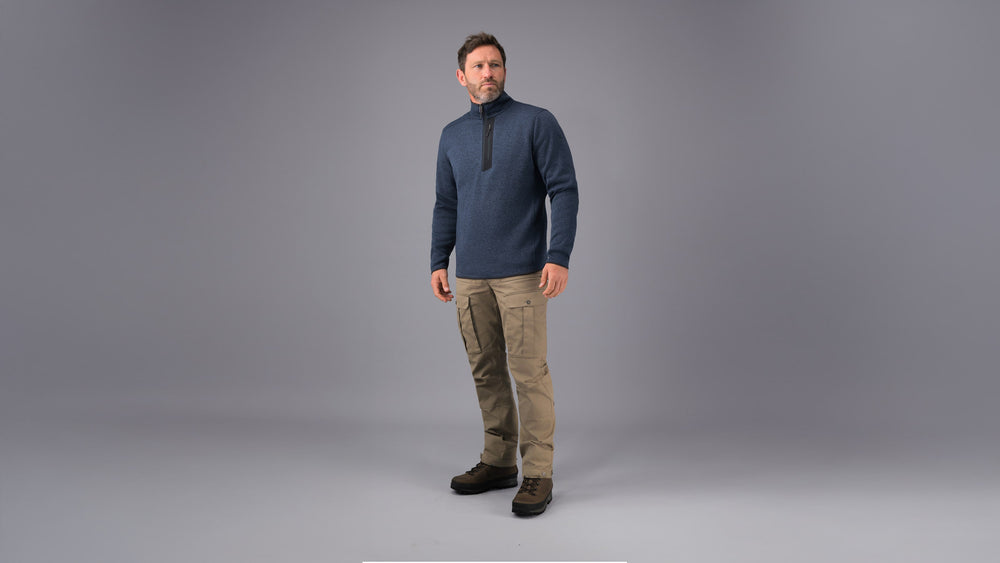 Built from a 65% recycled polyester, 35% cotton blend, Torv balances durability with weather resistance. A PFC-free DWR and wax finish sees off wind, dirt, and showers, while double-layer reinforcements at the knees and seat deliver long-term protection.