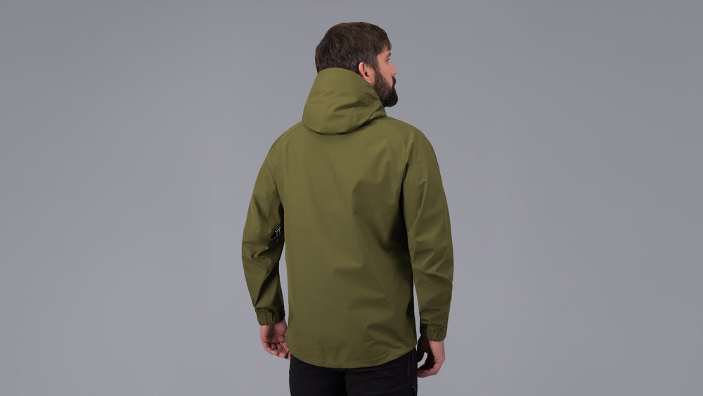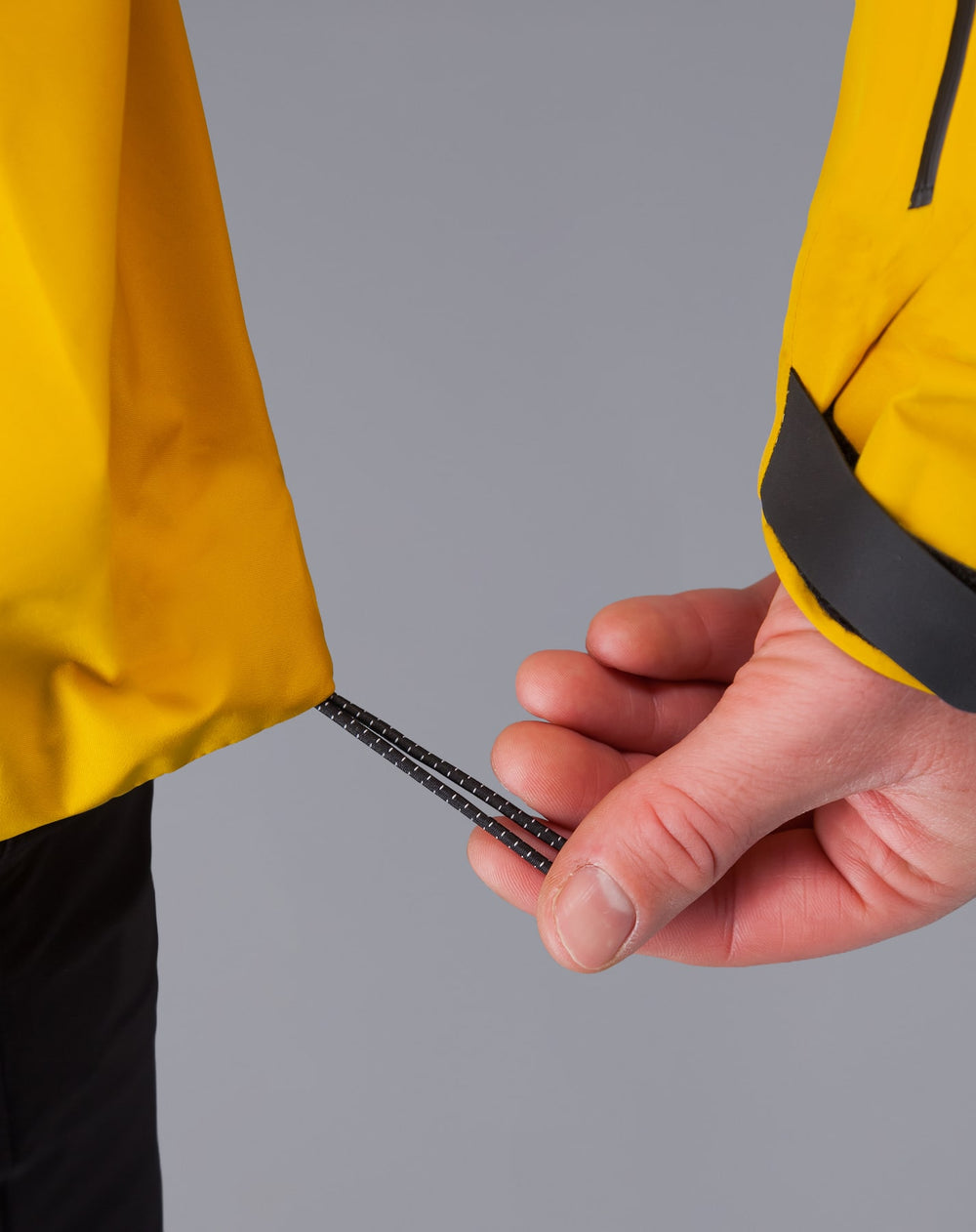 A helmet-compatible hood with a wire-stiffened laminated peak maintains vision in driving snow, with RECCO® rescue technology integrated discreetly within. Hypalon® cuff tabs with triple reinforced VELCRO™, glove-compatible Cohaesive™ adjusters at hem and hood, anti-snag hem cords, and storm-sealed 2-way YKK® AquaGuard® zips work together as a unified, weather-locking system.