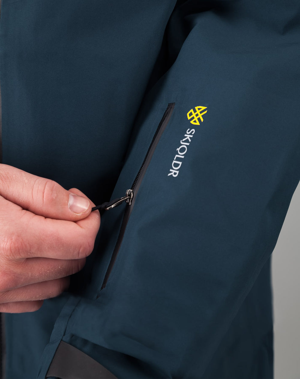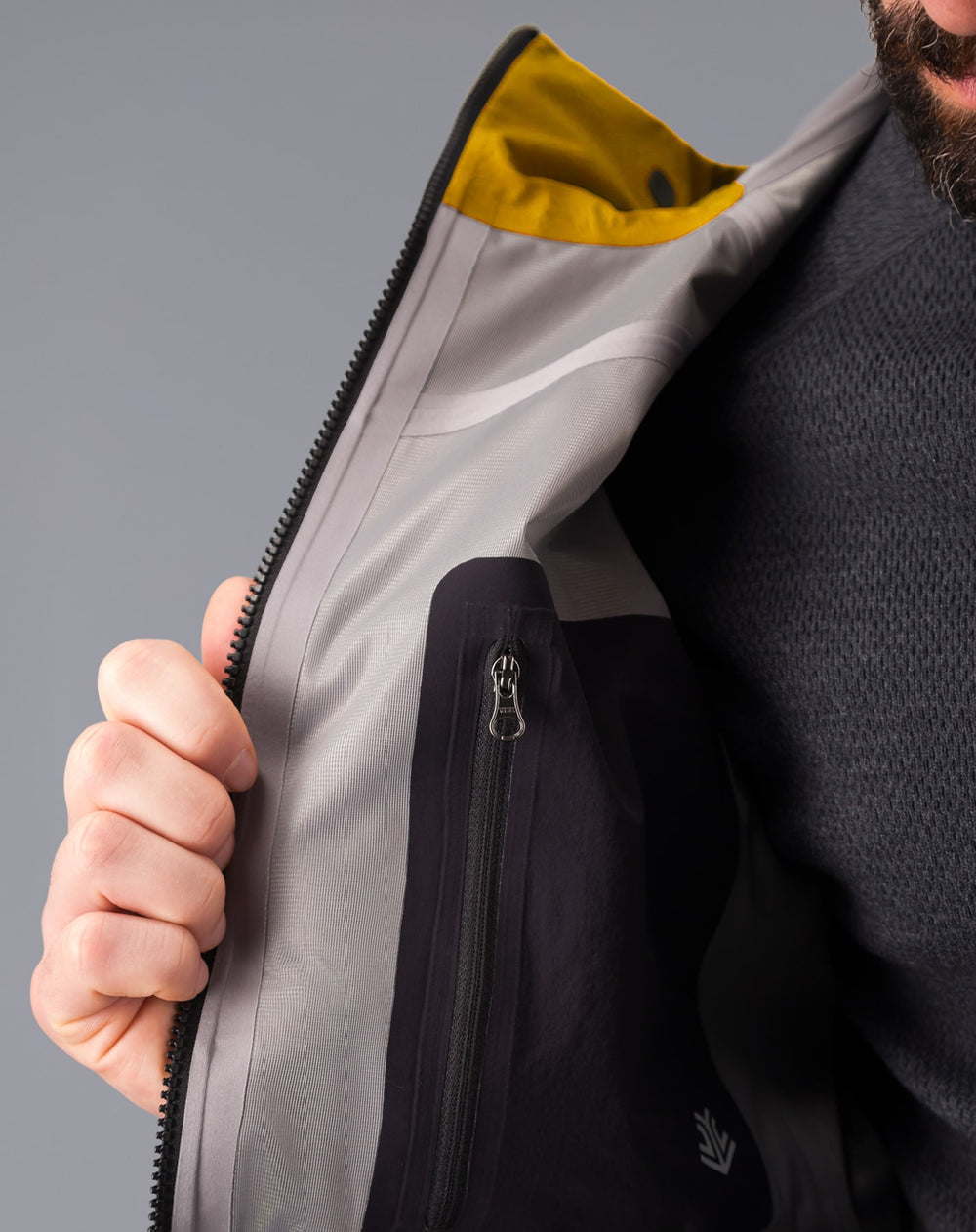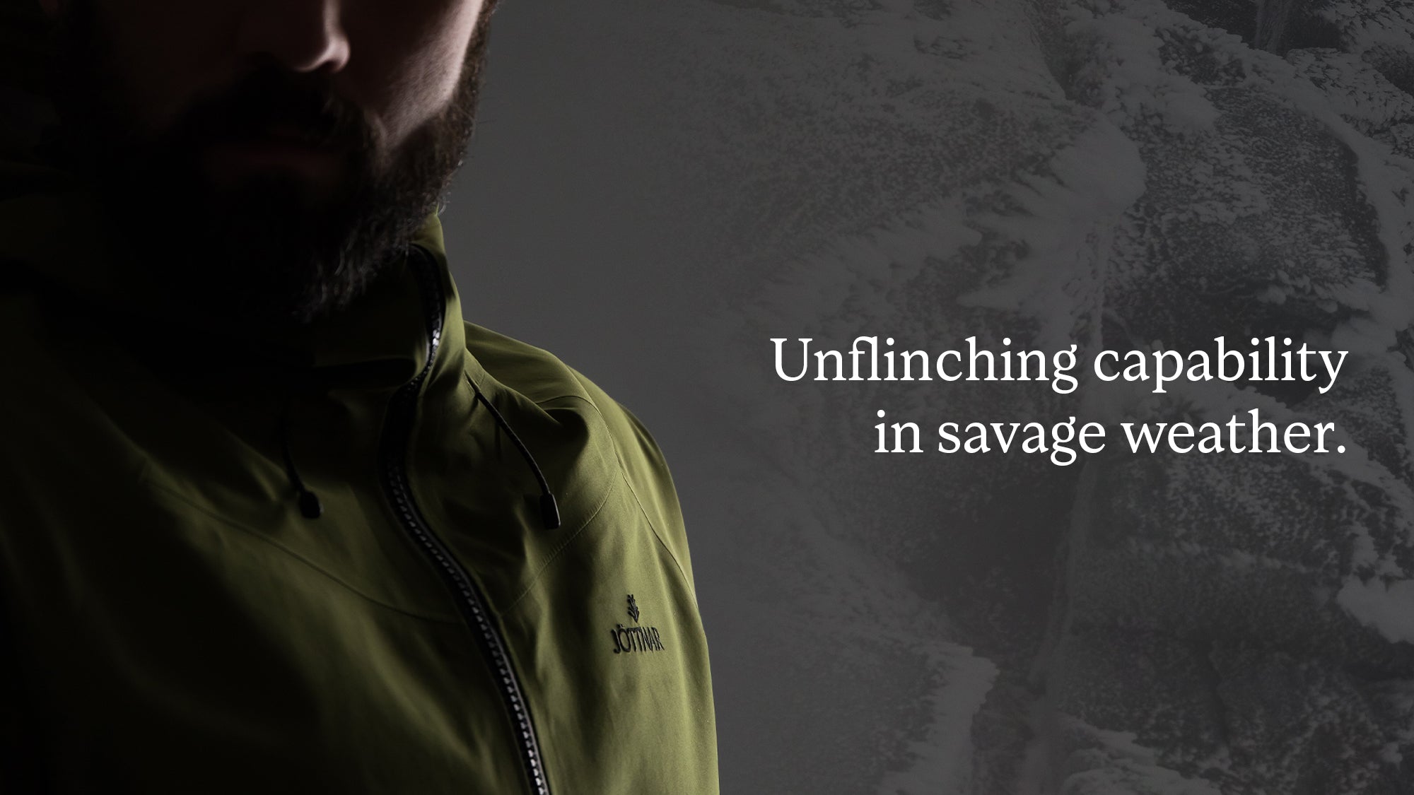 Cut from 75D 3-layer SKJOLDR™ fabric; our proprietary and tough-as-hell hardshell fabric named after the Old Norse word for shield. Grim pairs rugged 20,000 H/H waterproofing with high breathability, a 100% recycled polyester face, and a PFC-free DWR all engineered for relentless winter punishment. The updated build features a refined silhouette, expanded hand pockets for rucksack and harness use, and an upgraded internal valuables pocket for secure storage.