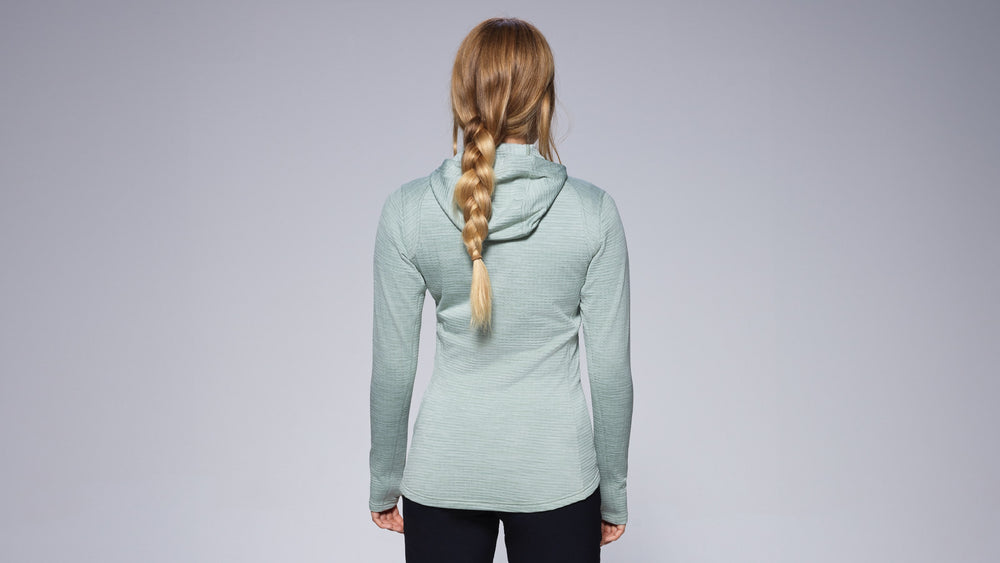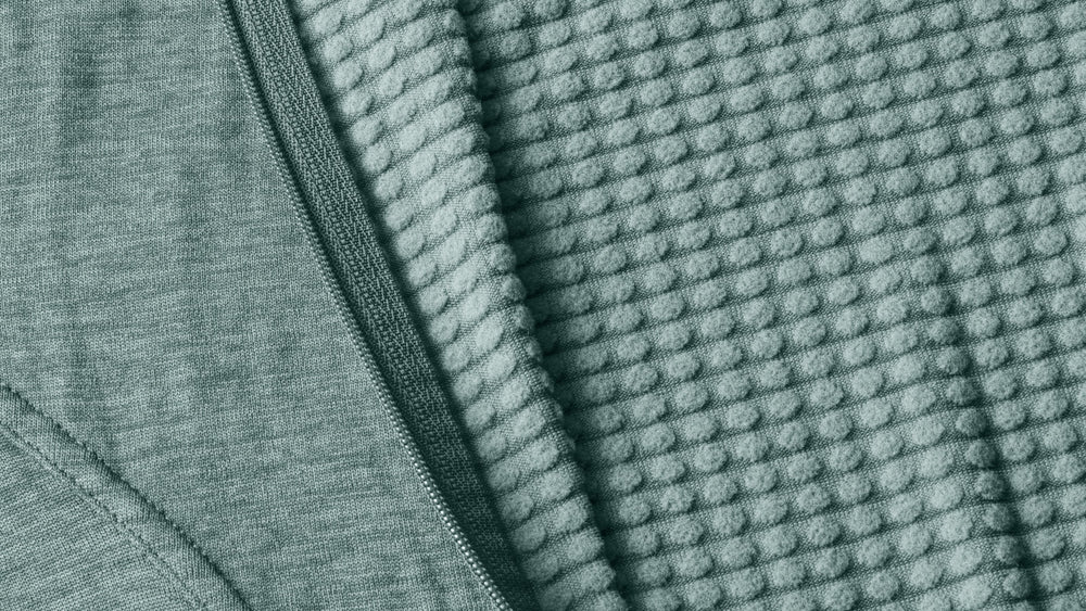 Warm, soft and wicking, the upgraded grid-backed, stretch-fleece fabric has a deep knit structure for insulation and greater loft, transporting moisture and maintaining breathability and comfort.