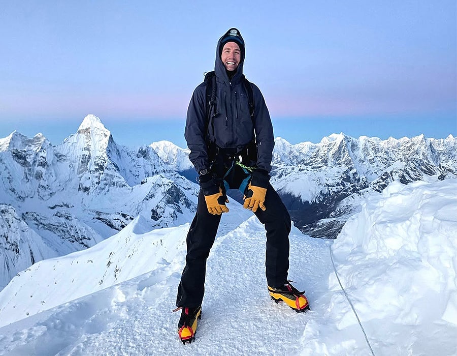 Stuart celebrates reaching the summit of Imja Tse (6189m).