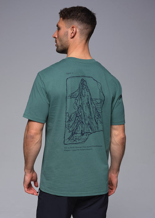 A premium organic cotton logo t-shirt, part of our Limited Edition Slingsby Collection. The Explorer's design is fashioned after Slingsby's journals of exploration, inspired by his sketch of the savage Strandaatind.