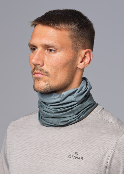 Multifunctional neckwear piece engineered for spring/summer use. Built with CoolNet® UV fabric, a 95% recycled material with UPF50 sun protection and HeiQ® Smart Temp cooling technology for excellent sweat management qualities.