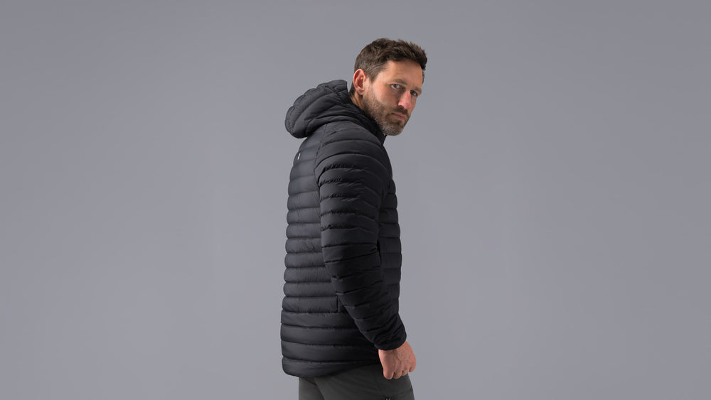 Now 65g lighter, with a sharpened silhouette, narrowed baffles for improved thermal efficiency, and a redesigned hood system for superior protection and comfort. A longer dropped hem improves coverage, while enhanced articulation across the sleeves and shoulders boosts mobility on technical terrain.