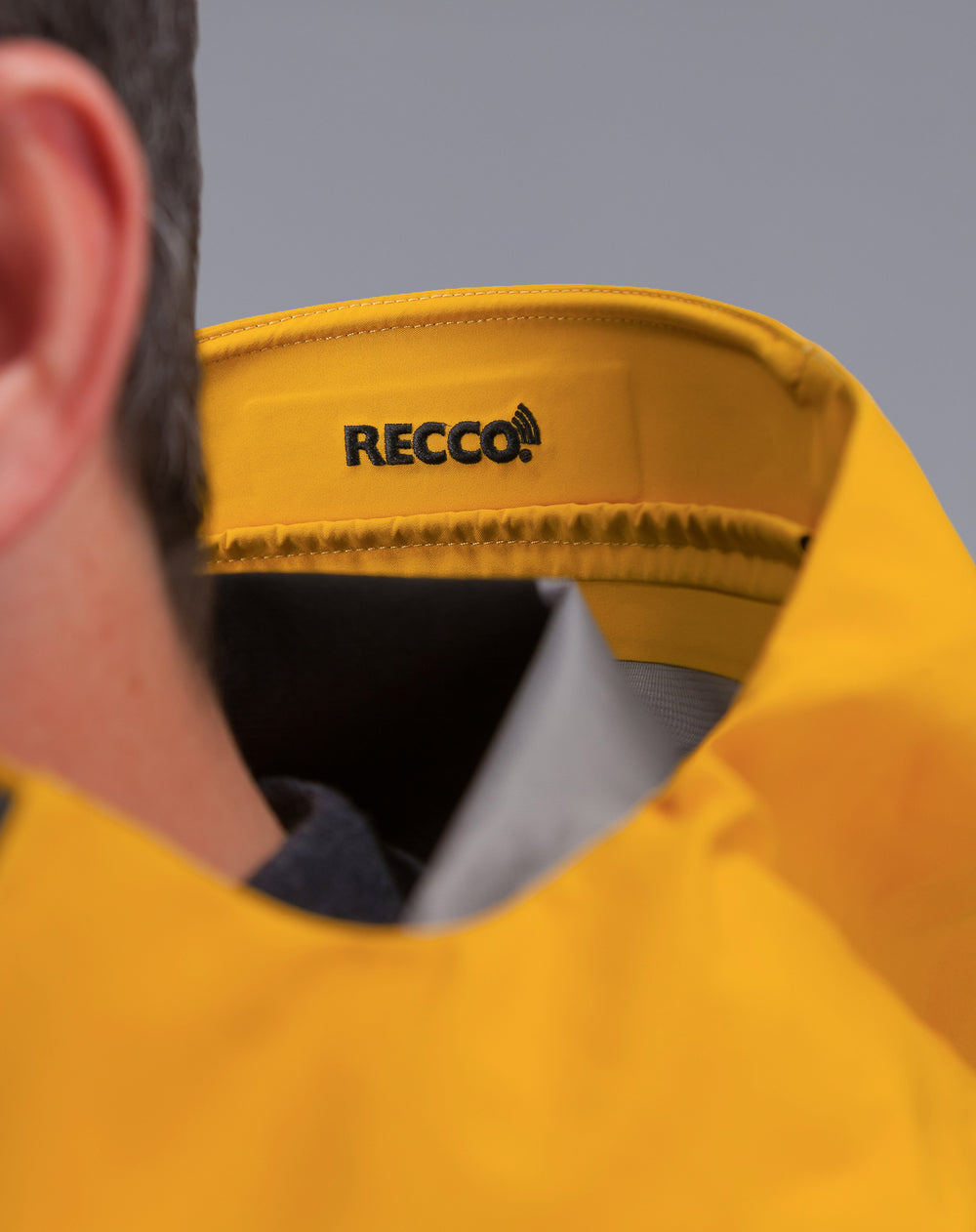 A helmet-compatible hood with a wire-stiffened laminated peak maintains vision in driving snow, with RECCO® rescue technology integrated discreetly within. Hypalon® cuff tabs with triple reinforced VELCRO™, glove-compatible Cohaesive™ adjusters at hem and hood, anti-snag hem cords, and storm-sealed 2-way YKK® AquaGuard® zips work together as a unified, weather-locking system.