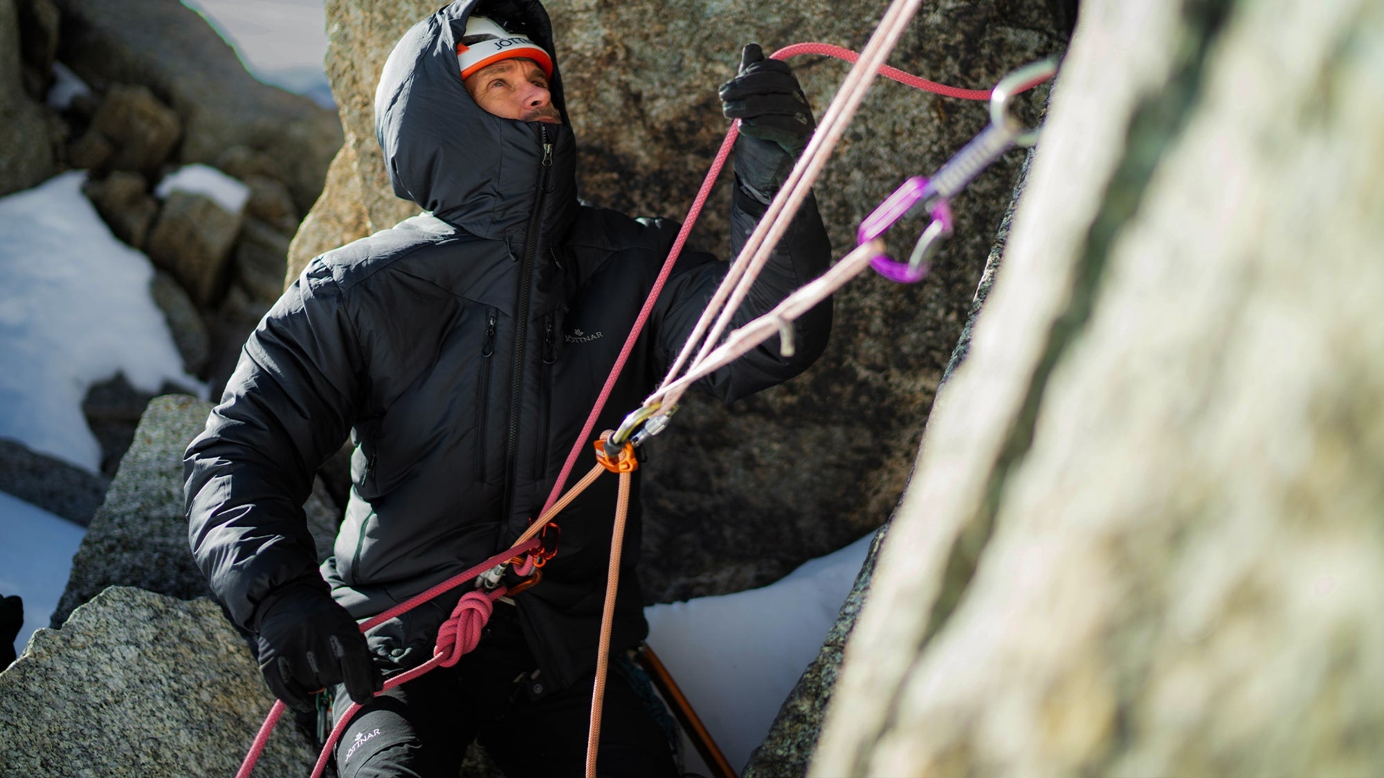 Ravn is our warmest ever synthetic layer, a severe-weather belay jacket built for stillness in the storm. A nod to Odin’s ravens—the sharp-eyed seekers and silent watchers of Old Norse myth—Ravn is made for the backs of the cold-weather watchmen. Those who stand firm on prolonged frigid belays and through the bite of winter.